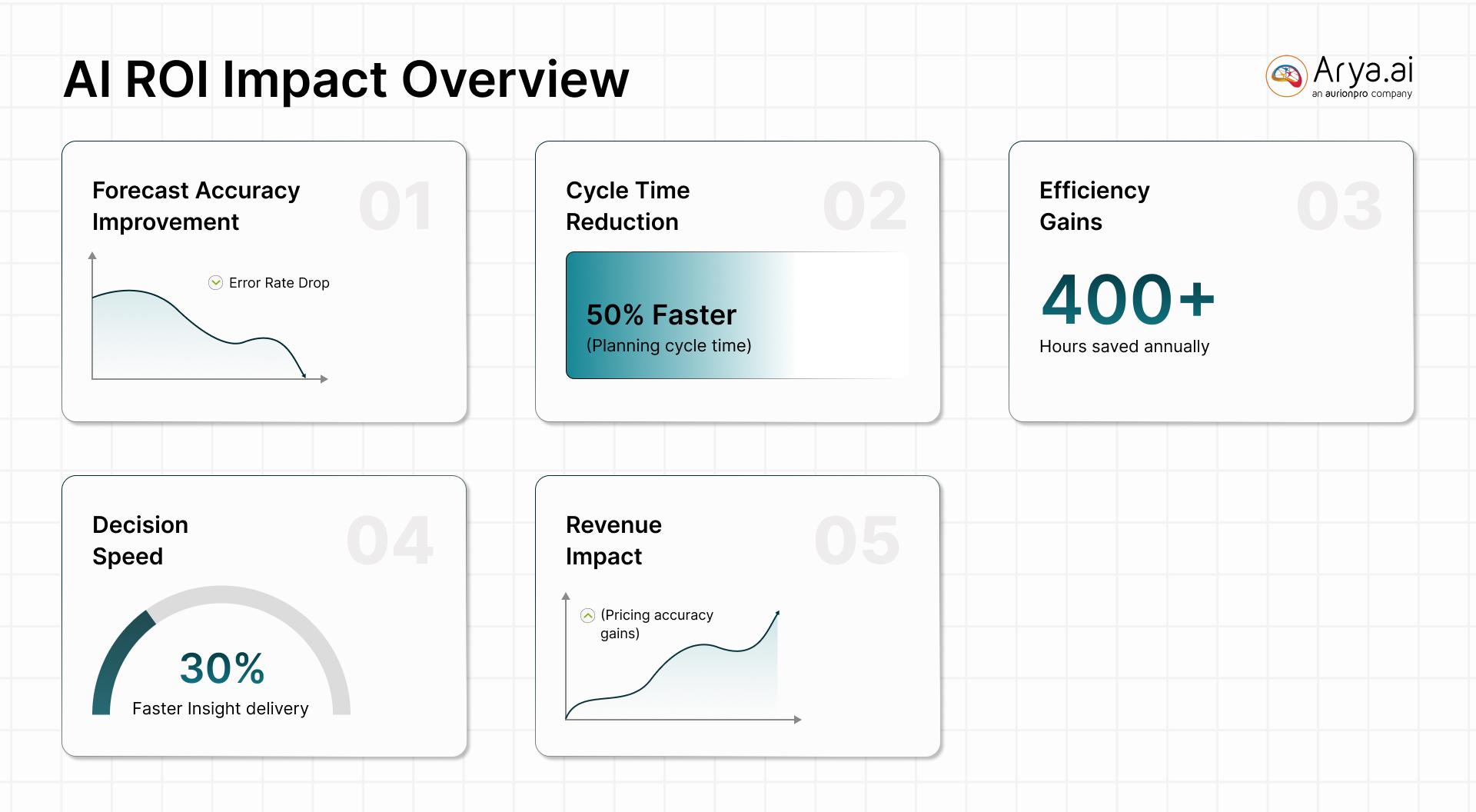 That said, the upside can be substantial when AI projects are executed well. Finance teams that have automated time-consuming processes, such as accounts payable or reconciliations, report saving hundreds of hours annually. Others highlight that AI has dramatically accelerated analysis, allowing teams to deliver insights faster without reducing headcount. In forecasting, AI-powered models can analyze far more drivers and scenarios than a human team could manually, producing more robust and timely projections. The impact varies widely based on data quality and use case maturity. Efficiency gains are the easiest to quantify. Forecasting improvements depend heavily on data depth and model design, so finance teams track error rates and cycle times instead of relying on generic industry benchmarks.